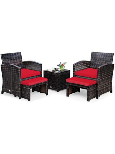 Gymax 5PCS Rattan Patio Furniture Set Chair & Ottoman Set W/ Red Cushions - Red - View 1