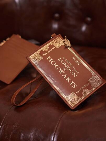 HARRY POTTER X SHEIN 1 Pc Express Print Square Zipper Wallet, Gifts,Back To School, Vacation, Bag Charm - Brown - View 1