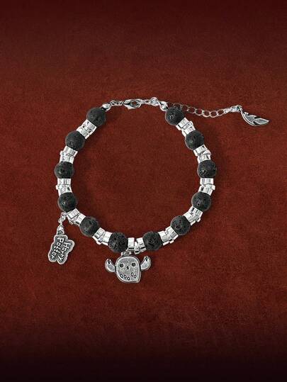 HARRY POTTER X SHEIN Minimalist Bracelet - Hedwig Midnight Flight Black Bead Design - Silver - View 1