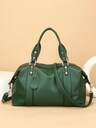 New Vintage PU Leather Women Handbag, Fashion Zipper Shoulder Bag With Detachable Strap, Women Work Travel 2-In-1 Bag, Gray, Black, Green