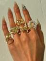 7pcs/Set Vintage Fashionable Elegant Hollow Floral Engraved Bezel-Set Faux Gemstone Gold Metal Rings For Women