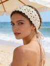 1pc Handmade Crochet Floral Hollow Headband, Bohemian Style, Suitable For Beach, Daily Wear, Vacation Summer Hair Accessories Boho Summer Beach Hair Bands