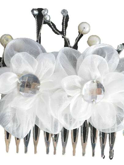 Headdress Flowers Comb First  Graduation Party - White - View 1