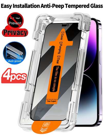 4 Packs Privacy Screen Protector With Auto-Alignment Kit Compatible With IPhone 16 Pro Max, Ultra Clear, 9H Hardness Shatterproof Tempered Glass Film Protective Ultra-Fast Installation Dust Free Design Screen Protector Film Toughened Glass Phone With Install Kit, 9H Hardness, Anti-Scratch, Full Coverage Protection Compatible With IPhone 16 ProMax/16 Plus/15 ProMax/14/13/12/11 Series, No Bubbles No Dust - 4pcs - View 1