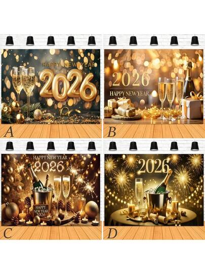 Happy New Year 2026 Black Gold Balloon Champagne Decorative Banner Backdrop Gold Fireworks Gift Box Decorative Design Suitable For Happy New Year Family Gathering Party Background Decor Photography Banner Vinyl - Multicolor - View 24