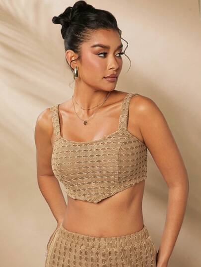 Hauture Chic Textured Knit Crop Sleeveless Top - Coffee Brown - View 1
