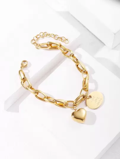 1pc Heart Charm Bracelet, Stainless Steel Jewelry - Yellow Gold - View 1