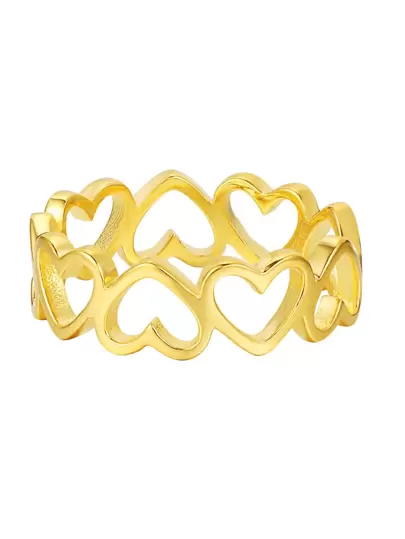 Heart Decor Silver Cuff Ring - Yellow Gold - View 1