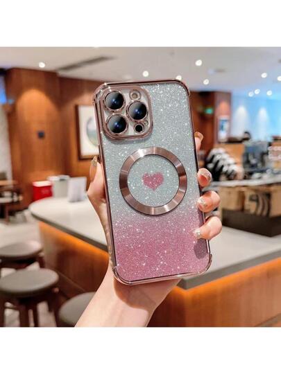 Pink Heart Pattern Ombre Phone Case - Gold - View 1