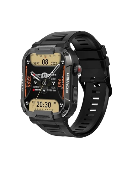 Heart Rate Monitoring Square Smart Watch - Black - View 1