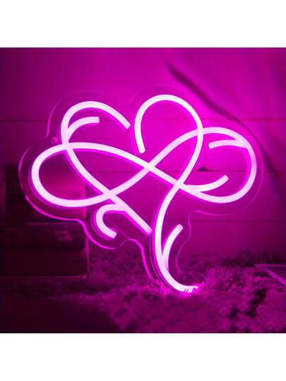 Heart-Shaped Neon Light Sign Wall Decor, Led Neon Light Art Wall Decor Love Sign Bedroom Decoration, Home Wedding Decoration, Living Room Decoration Valentine's Day Gift - Pink - View 1