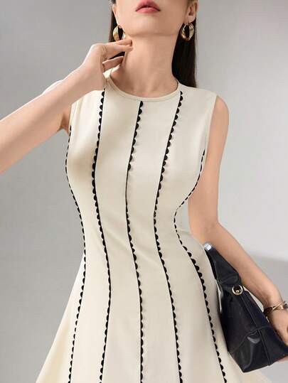 Heiryn Women's Elegant Sleeveless Midi Dress With Contrast Trim And Waist Cinching ,Summer Dress,Elegant Dress - Multicolor - View 6