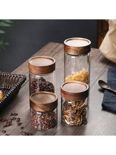 High Borosilicate Glass Acacia Wood Screw Cap Sealed Jar, Kitchen Storage For Grains, Herbs, Honey - Threaded Acacia Wood Glass Sealed Jar - View 1