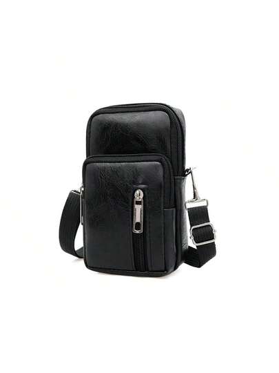 High Capacity Shoulder Male Fanny Pack Men Genuine Leather Messenger Bags Men's Fashion Business Crossbody Bag Shoulder Bag Sling Bag Side Bag Square Bag Black Bag Business Casual Waterproof Valentines Gift For Men - Black - View 1
