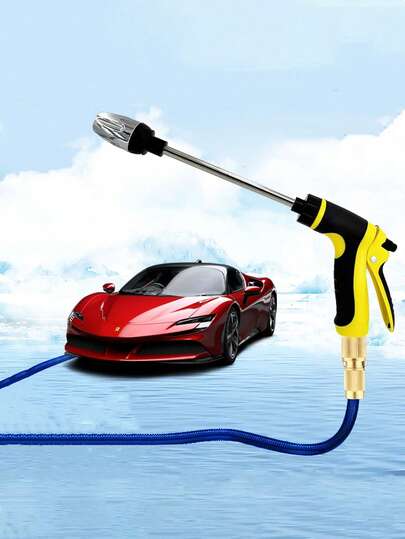 High Pressure Car Wash Water Gun, Home Car Washing Tool, Metal Long Handle, Rubber Coated Grip, Garden Irrigation Supplies - Yellow and Black - View 1