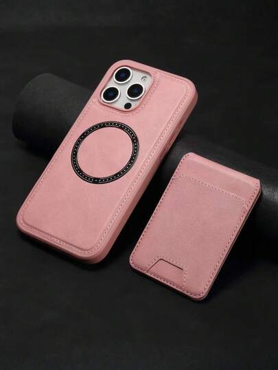 High-Quality Retro 2-In-1 Detachable Phone Case With Independent Card Slot, Compatible With IPhone 17/16/15/14/13/12 Pro/Pro Max, Supports Wireless Charging, Features Credit Card Slot And Stand - Pink - View 1