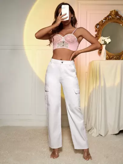 EURMUSE High Waist Cargo Jeans - White - View 1