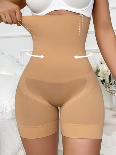 Snug Zone Apricot High Stretch Women's Casual Comfy Textured Pattern Long Shapewear Shorts With Semi Sheer Fabric - Apricot - View 1