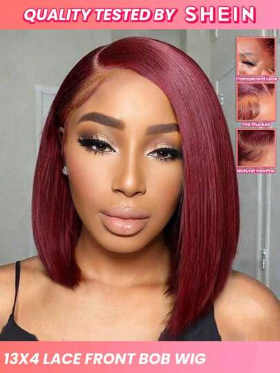 Highlight Short Straight 13X4 Lace Front Wigs Ombre 99J Real Human Hair Lace Frontal Closure Wigs For Women With Front Baby Hair Pre Plucked Natural Hairline Wig - S99J - View 1