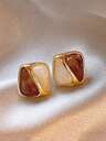 2pcs Maillard Earrings, Beige & Gold Color Earrings For Women, Unique Design, Retro French Style, Warm Color Elegant Earrings