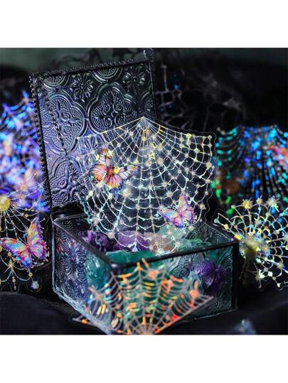 10Pcs/Bag Spider Wonderful Art Series, Exquisite Morning Dew Spider Web Theme Sticker Pack, PET Waterproof Material, Scrapbook Supplies, Decorative Notebook Photo Frame Phone Case Water Cup Garbage Magazine Stationery Box DIY Personalized Collage,School Supplies,Back To School Stickers Funny Stickers Laptop Stickers Kindle Phone Stickers - Multicolor - View 13