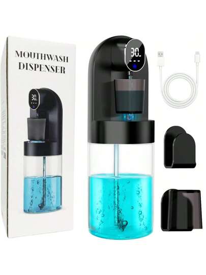 A White/Black Automatic Induction Mouthwash Machine, Smart Soap Dispenser, Desktop Or Wall-Mounted, Easy To Install, 4 Adjustable Levels, With Two Mouthwash Cups, Visible Water Tank, Rechargeable, Suitable For Home Use, Bathroom, As A Gift Back To School - Black - View 1