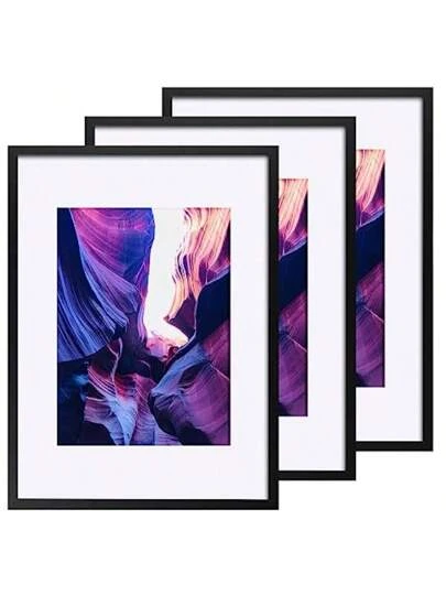 Picture Frames 11x14 Set Of 3 Black Large Gallery Wall Frame Set Display Photos 8 X 10 With Mat Or 11 X 14 Without Mat Wall Mounting Composite Wood - Black - View 1