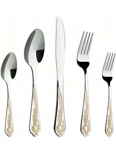 Hot Gold Silverware Set, 20 Piece Stainless Steel Golden Flatware Set For 4, Silver Tableware Set With 24K Gold-Plated Trim, Eating Utensils, Great For Family Gatherings & Daily Use(Prestige) Best Girfts - Prestige - View 8