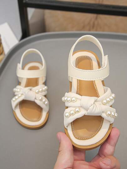 Hot Selling! New Girls' Beige Pearl Sandals With Sweet Bow Princess Shoes, Super Soft, Breathable, Anti-Slip Sole, Comfortable And Versatile Summer Vacation Shoes For Children - Beach Shoes - Beige - View 1