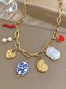 1 Pc Gold Color Heart Charm Bracelets For Women Teen Girls Stainless Steel Couple Love Friendship Bracelets Daily Party Jewelry Gifts Valentines