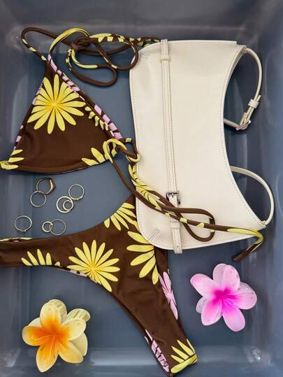 Women's Summer Beach Floral Print Sexy Bikini Set - Printing - View 1