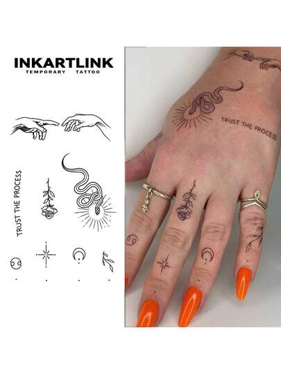 INKARTLINK Temporary Tattoos, Various Elements Like Snake, Rose, Moon, Waterproof Long-Lasting 1-2 Weeks, Realistic Tattoo Appearance, Botanical & Symbol Tattoos - Black - View 1