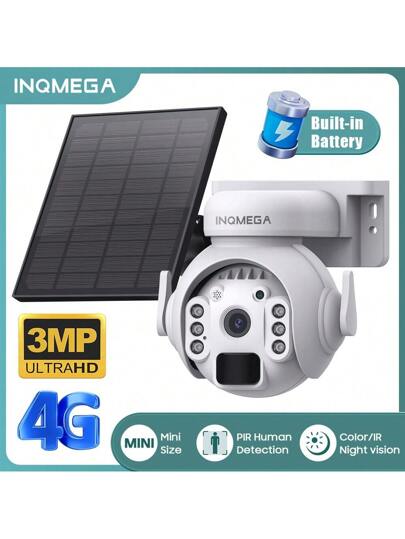 INQMEGA 3MP 4G SIM Solar Camera Outdoor Waterproof Human Detection Wireless PTZ Security IP Camera Mini With Two Way Audio - White - View 1