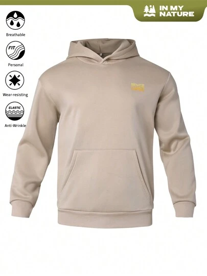 In My Nature Men's Casual Ombre Letter Print Kanga Pocket Hoodie Sweatshirt, Spring/Autumn Essentials Hoodie - Apricot - View 1
