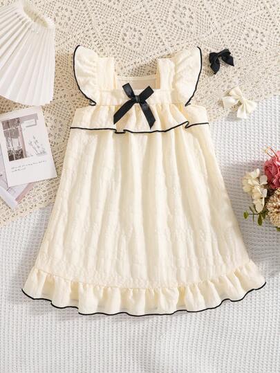 Infants & Girls' Apricot Solid Color Simple Fashion Bowknot Short Sleeve Long Nightgown Loungewear - Apricot - View 4