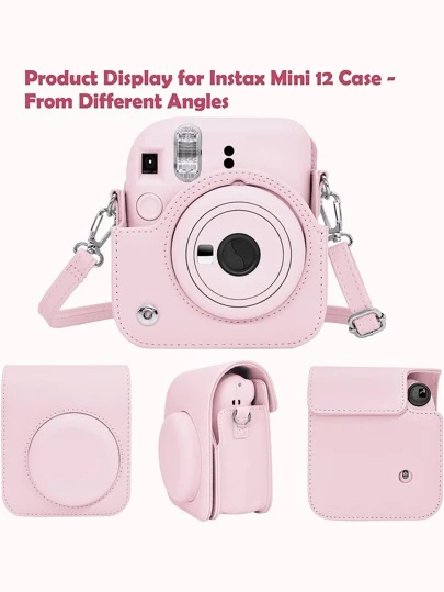 Instant Mini 12 Camera Case, Compatible With Mini 12/Mini 12 Camera - PU Leather Protective Cover With Adjustable Shoulder Strap - Floral Pink - Pink - View 9
