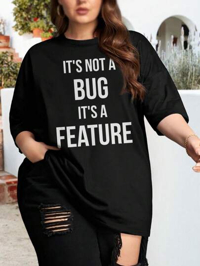 It's Not A Bug It's A Feature! - Funny Coder Oversize Women T-Shirt For Women (Big Sizes) - Black - View 5