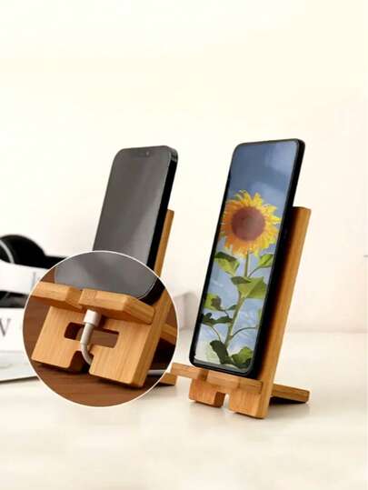 1pc/2pcs Natural Bamboo Desktop Phone Stand, Square Bamboo Smartphone Holder, Suitable For Office Organization And Storage, Elegant Desktop Electronics Accessory Stand For All Devices,For School Supplies,Back To School - Multicolor - View 6