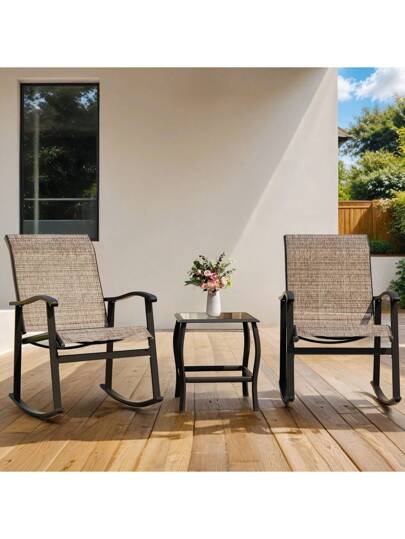 JAMFLY 3 Piece Rocking Bistro Set, Outdoor Furniture With Rocker Chairs And Glass Coffee Table Set Of 3 - Brown - View 1