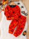2pcs Christmas Snowflake & Reindeer Print Crew Neck Long Sleeve Top And Pants Set, 3-7 Years Old, Holiday, Casual, Student Outfit