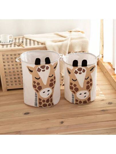 Cartoon Giraffe Print Laundry Hamper Dirty Toy Clothes Basket Foldable Easy Storage Portable Large Capacity Clothes Basket Large Round Storage Basket Cute Collapsible Laundry Basket Organizers And Storage Bins Foldable Dirty Clothes Basket Waterproof Bucket Laundry Organizer - Multicolor - View 1