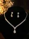 Four Piece/Set Elegant Ladies' Sparkling Fashion Set, Elegant Jewelry Set With Rhinestone Earrings And Necklace Bracelet, Suitable For Brides, Bridesmaids, And Banquets.