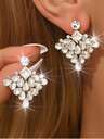 3pcs/SetElegant Bridal Ladies' Hollowed Out Design Crystal Fashion Set, Luxurious Jewelry Set Suitable For Banquets, Parties, Weddings.