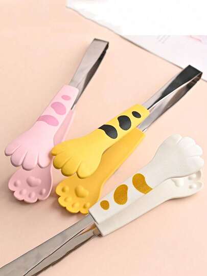 Japanese Cat Paw Shaped Food Clip, Cute Cartoon Cooking Tongs, Stainless Steel BBQ Clip, Sandwich Baking Clip, Kitchen Tool, Kitchen Pliers, Tableware, Kitchen Accessories, Kitchen Supplies - Large - View 1