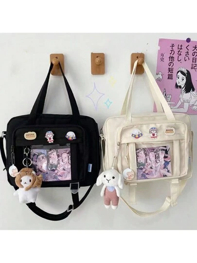 Japanese High School Girl JK Transparent Handbag, Shoulder Bag, Messenger Bag, Large Crossbody Bag, Street Fashion Japanese Style Women Bag , Y2k - Black - View 1
