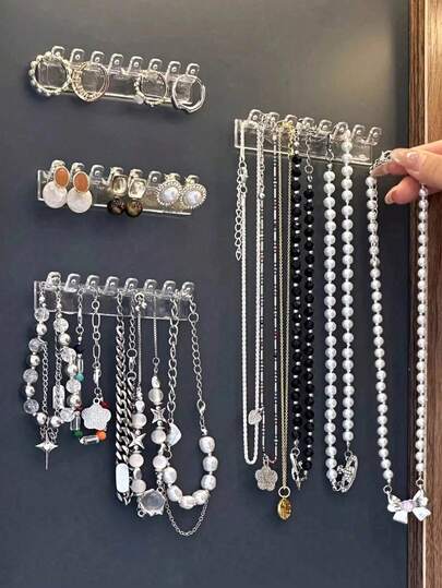Jewelry Display Rack Wall-Mounted Jewelry Organizer Rack Durable Jewelry Organizer Hooks Transparent Necklace Storage Hanger Multi-Functional Storage Hook Space-Saving Jewelry Organizer Stand Hanging Necklace Hanger For Bathroom Bedroom School Dormitories Home Boutique Dressing Table Mirror Cabine For Earrings Rings Bracelets Accessory Rack Display Shelf Jewelry Towers Travel Essentials Fall Decor Back To School - Multicolor - View 1