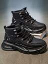 Men's High-Top Leather Riding Boots Autumn And Winter New Thick Sole Height Increase Non-Slip Wear-Resistant Mid-Top Round Toe Lace-Up Side Zipper Men's Boots Men's Large Size 46 Size Color Matching Letter Sewing Men's Boots Mid-Top Fashion Outdoor Dating Party Street Street Shooting Men's Boots Outdoor Off-Road Climbing Men's Mountaineering Boots