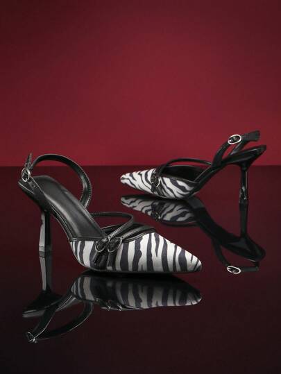SHUZIA Women's High Heel Pointed Toe, Match Any Dress, Zebra Print Fashionable Buckled Back Strap Shoes Spring Shoes Spring Break Easter Wedding Shoes - Multicolor - View 1