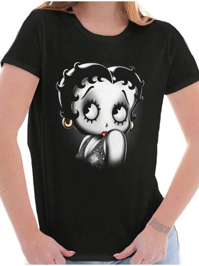 Betty Boop Womens Fitted Graphic Tee Shirt Cute Vintage Retro Animated Sassy Cartoon Character Old School Flapper Ladies Casual Slim Fit Fashion Cotton Printed Short Sleeve Crewneck Tshirt Brisco Brands - Black - View 1