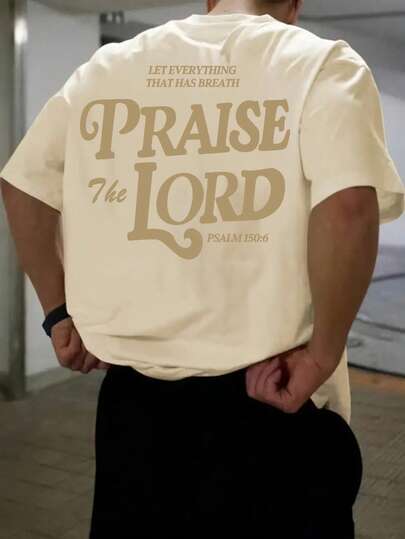 K-GLORY Men's Versatile Simple Print Element Short Sleeve T-Shirt | Bible Psalm Theme - Apricot - View 6